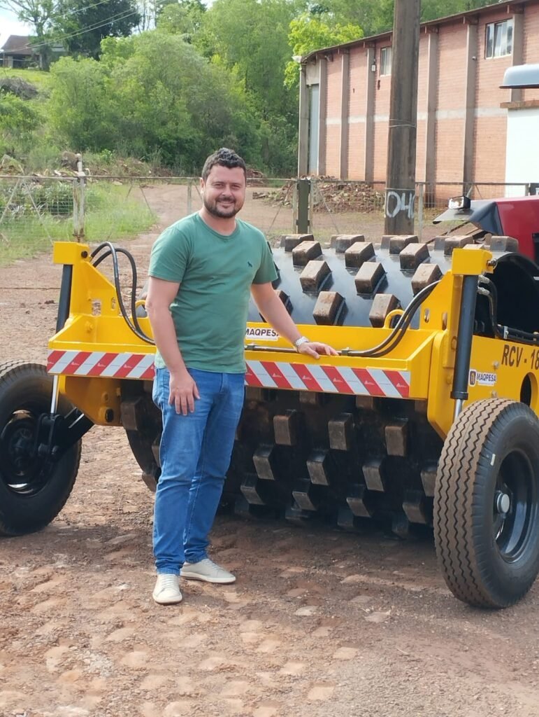O chefe do Departamento Municipal de Obras, Thales Paiva esteve juntamente com Hélio Vieira chefe da Divisão de Serviços Urbanos, Wellington Canazart chefe do Departamento Municipal de Desenvolvimento Econômico e Sidney, chefe da Divisão de Meio Ambiente, receberam o novo rolo compactador, uma importante aquisição para reforçar os trabalhos de manutenção e conservação das estradas rurais do nosso município.